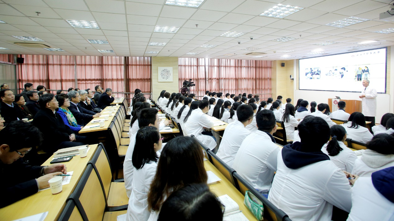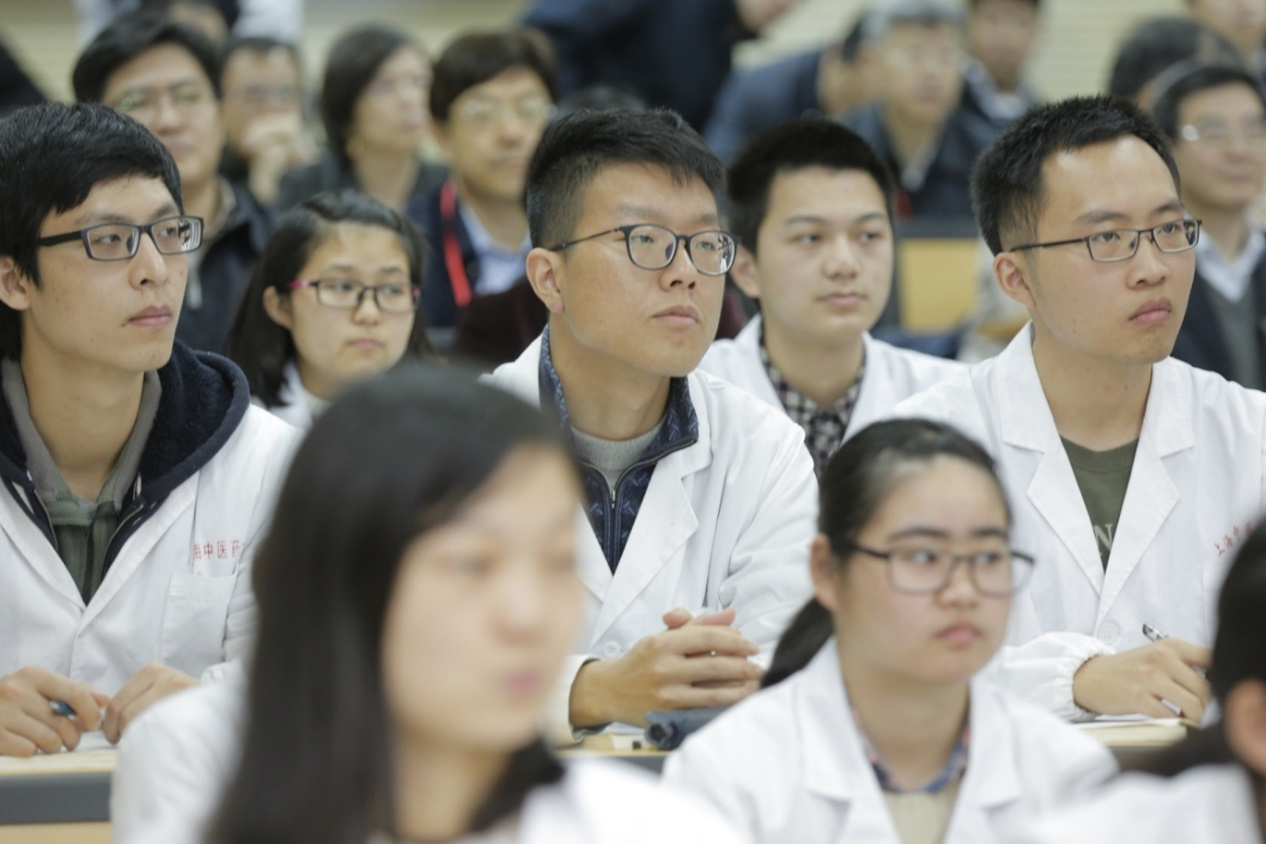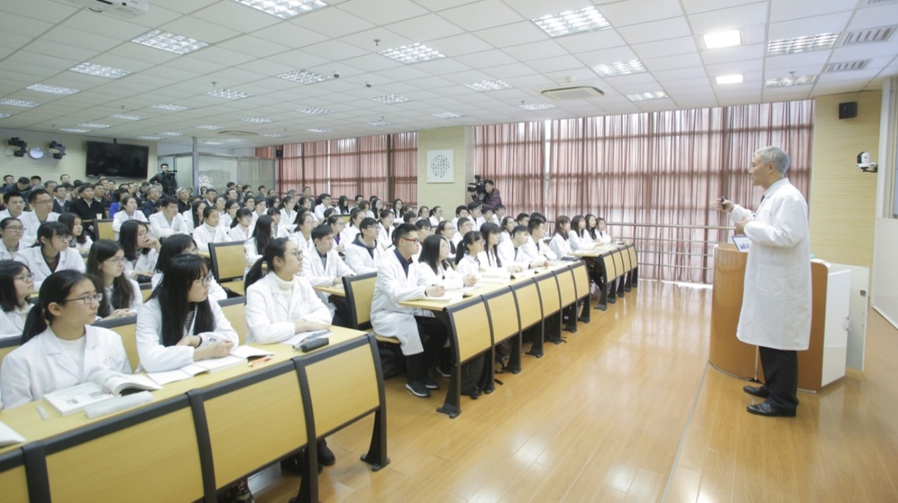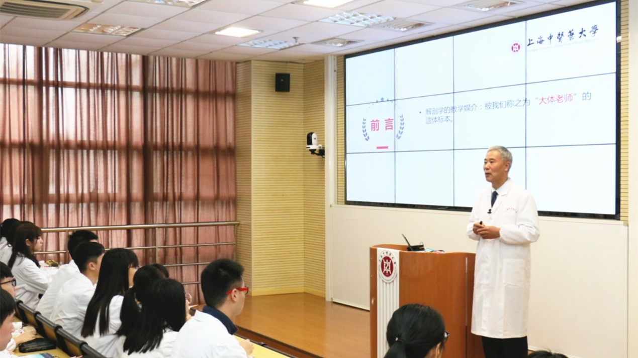 在我校一个学时的课程中,基础医学院解剖学教研室张黎声老师讲授了“人体解剖学第一课”,通过介绍人体解剖学中被称之为“大体老师”的教学媒介,带领学生们了解遗体捐献的相关知识,包括遗体捐献概念、原则、形式和用途、相关法律法规等。课程的主体是通过讲述6个真实的遗体捐献者故事,走进遗体捐献者的内心世界,生动阐述遗体捐献的意义。这些故事中有身患7种疾病仍感恩医学、感恩医生的黄琦奶奶;有我校优秀毕业生、轮椅上的白衣天使陈海新;有因病早逝的我校研究生徐欣毅同学等等,通过案例故事,将学生们第一次接触遗体标本的忐忑、恐惧心理潜移默化地转化感恩与敬畏之心。从“人”的角度诠释大体老师生命的特殊存在方式和意义。体验和感受遗体捐献者及其亲属的大爱大义,引发对生命的尊重,引发学生对中医药的认同感和投入健康中国伟业的自信心。