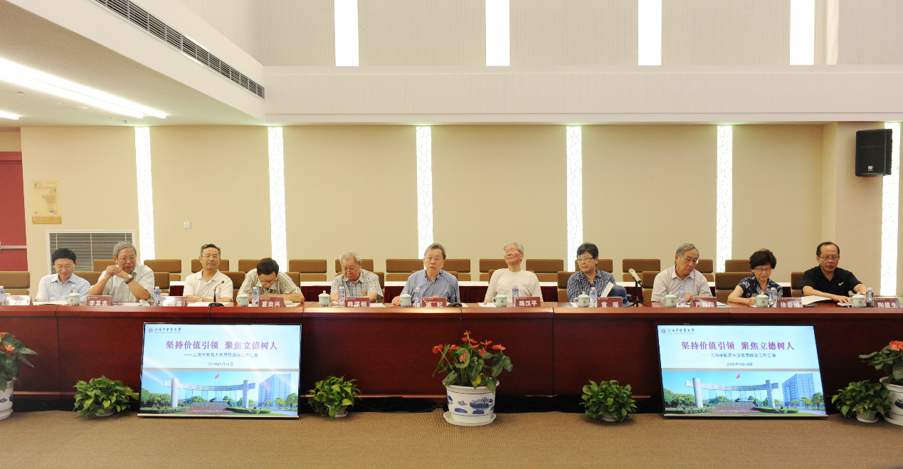 校党委常委、宣传部部长朱慧华以“坚持价值引领,聚焦立德树人”为主题,从八个方面汇报我校开展思想政治教育工作的情况。马克思主义学院党总支书记陈秋生介绍马克思主义学院的基本情况、学科建设现状和学科建设举措。学工部部长陶思亮、教务处处长舒静先后作交流发言,介绍学校加强学生思想政治教育和深化课程思政改革方面的举措。